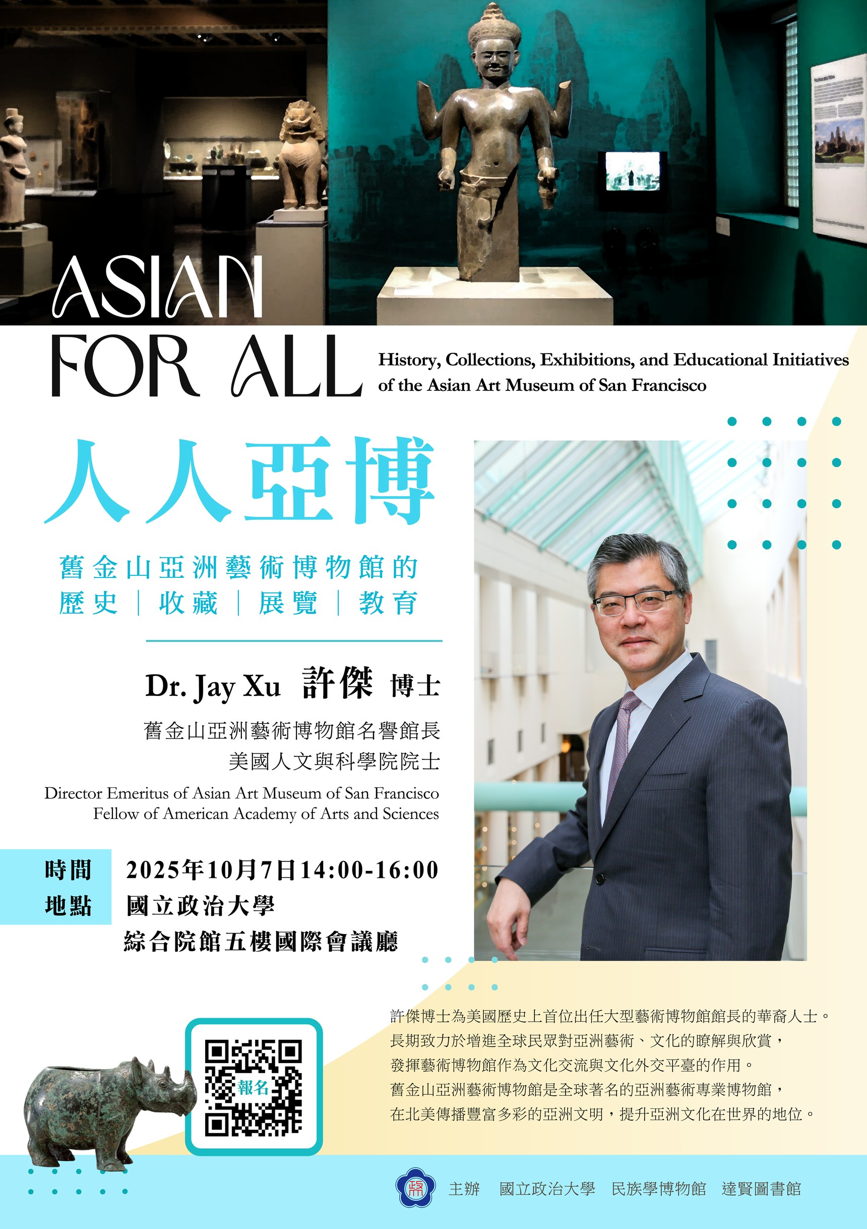 【國立政治大學 函】舉辦「人人亞博:舊金山亞洲藝術博物館的歷史、收藏、展覽和教育」專題演講(114年10月7日星期二 14時至16時/國立政治大學綜合院館五樓國際會議廳)